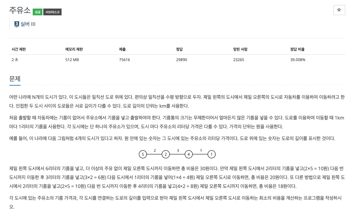 city = list(map(int, input().split())) #각 도시별 주유 비용