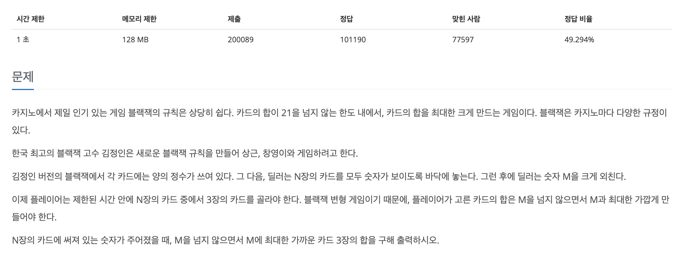 - 구할 수 있는 모든 조합의 수의 카드를 구함 -> for문을 통해서 구함