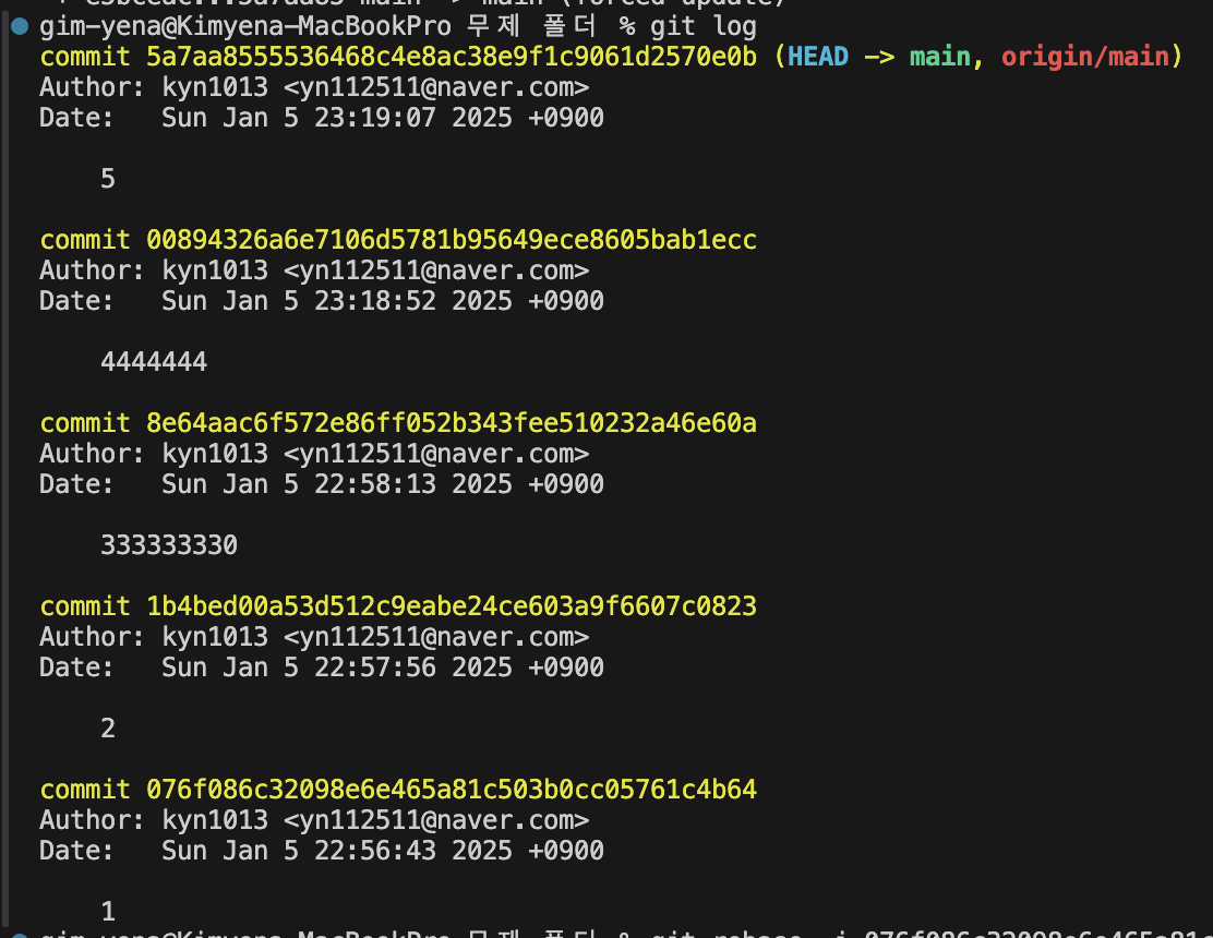 5. git push --force origin [브랜치 이름] 을 눌러주면 변경된 커밋명으로 푸쉬가 됨!