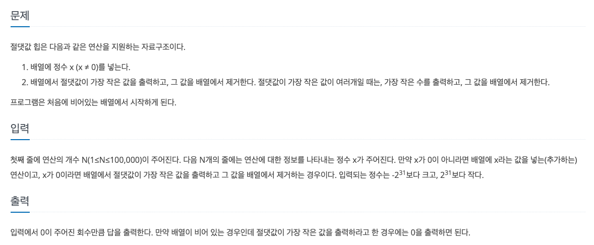 절댓값이 만약 같은 경우에는 음수를 제거하는 부분에서 고민을 많이 했다