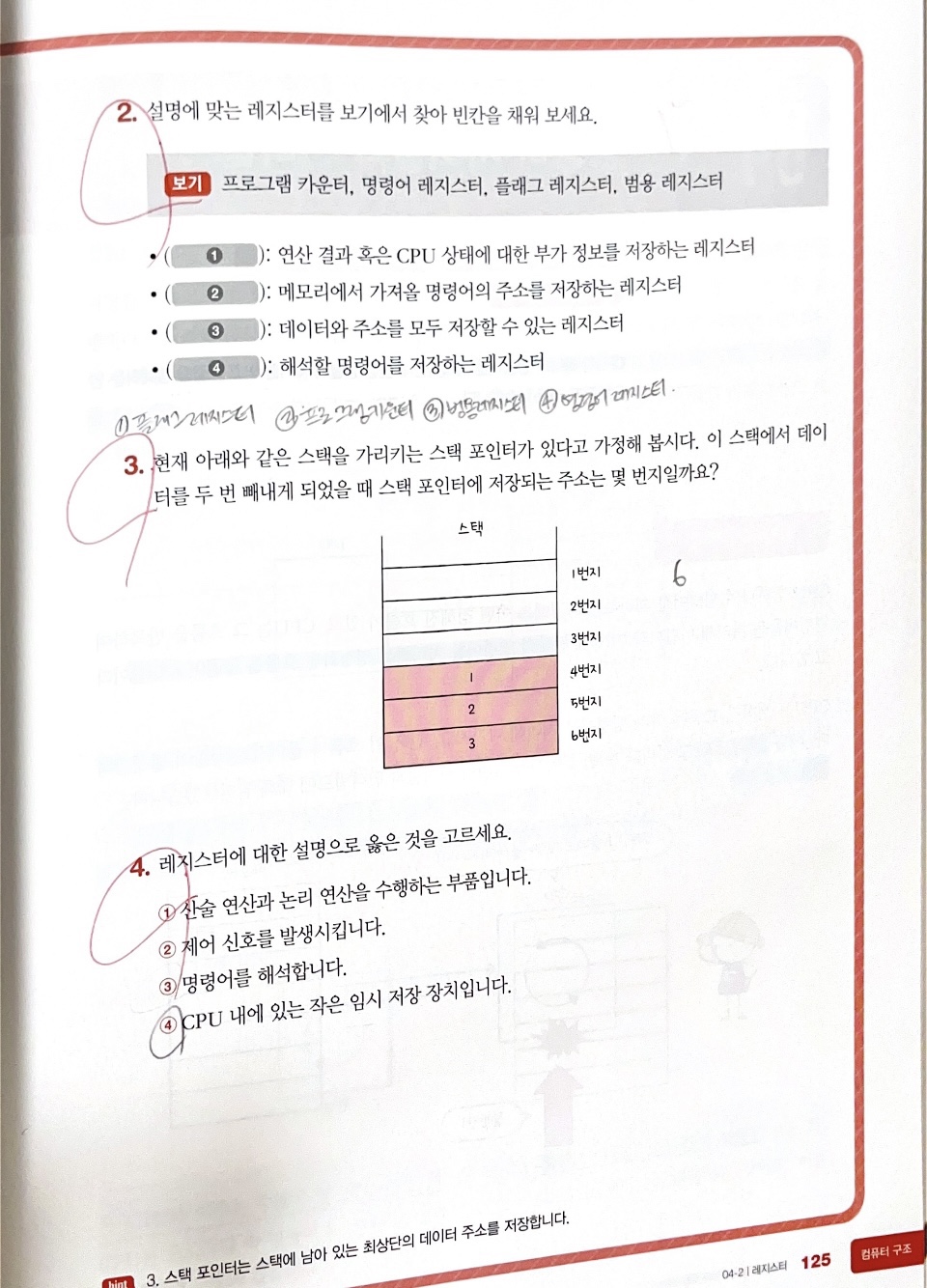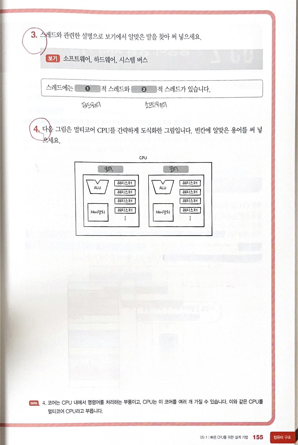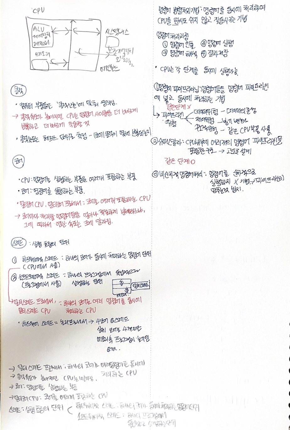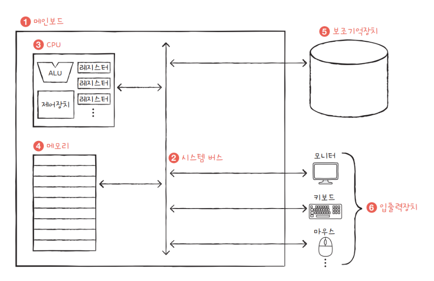 - 중앙처리장치(CPU) : 메모리에 저장된 명령어를 읽고, 해석하고, 실행