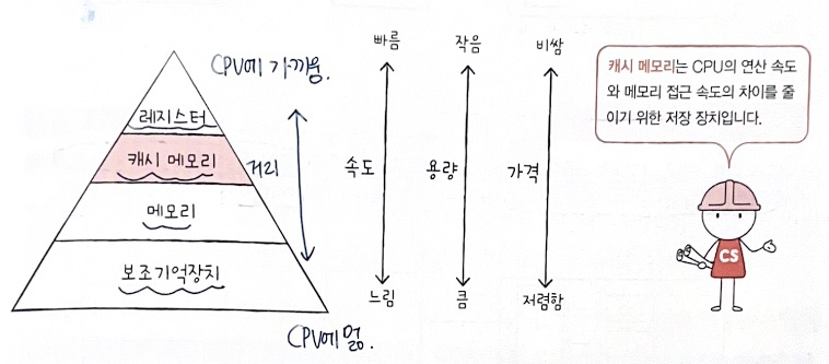 - 주기억장치(메모리) : 현재 실행되는 프로그램의 명령어와 데이터를 저장, 저장된 값의 위치는 주소로 파악