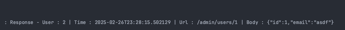 log.info("Response - User : {} | Time : {} | Url : {} | Body : {}",