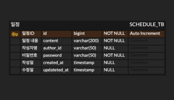 key값을 통해서 수정할 엔티티의 비밀번호와 ScheduleRequestDto에서 입력받은 비밀번호와 일치하는지 확인함.
