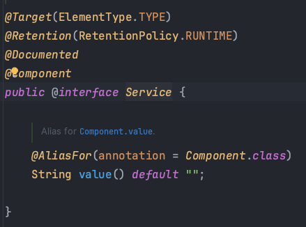 - 스프링에게 해당 객체를 Bean으로 등록하면서 서비스 계층이라고 알리는 의미